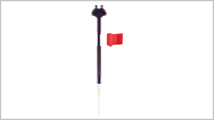 Medi-Globe Fibrin-Nadeln sind doppellumige Koaxialnadenl: Die Komponenten verbinden sich erstmals im Gewebe. Farbig gekennzeichnete Luer-Lock Konnektoren dienen dem gezielten Aufsetzen der Fibrin-Komponenten.