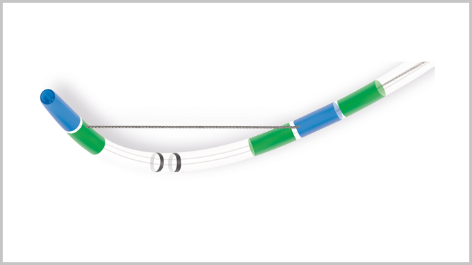 3-lumiges Papillotom, vorgeladen mit Nitinol-Draht .035“, 2-farbig Teflon ummantelt, mit einer 5 cm langen super flexiblen röntgendichten und hydrophilen Spitze